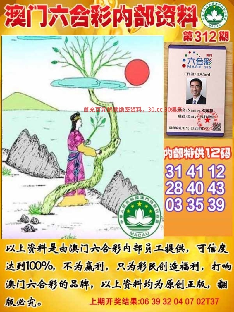| 307期 308期 309期 | 鼠龙蛇猴 | 狗20 兔39 鼠06 |